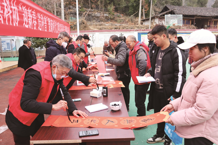 重慶彭水網(wǎng)(融媒體記者 李光澤)1月5日,縣科協(xié)在梅子埡鎮(zhèn)合力村開展“迎新春 送科普”暨新時代文明實踐科技志愿服務(wù)活動?;顒又校驹刚邆?yōu)榇迕駮鴮懘郝?lián),給村民宣傳科普知識、發(fā)放科普宣傳資料……據(jù)了解,本次活動共給村民送去300余幅春聯(lián)、300余份生活禮包,并發(fā)放1000冊科普資料。