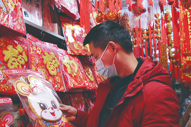 在佳惠超市入口最醒目的一角,各式各樣的福字、對(duì)聯(lián),喜慶可愛(ài)的小兔子掛件,一面面巨大的福字墻可謂是讓人眼花繚亂、美不勝收。前來(lái)選購(gòu)春聯(lián)的市民絡(luò)繹不絕。正在挑選春聯(lián)和燈籠的市民張亞說(shuō):“每年都買(mǎi)一些福字、對(duì)聯(lián)、燈籠掛在家里,每年都會(huì)喜慶一些,感覺(jué)很熱鬧,到時(shí)候大家來(lái)做客看到家里面喜慶,很漂亮?!?nbsp;