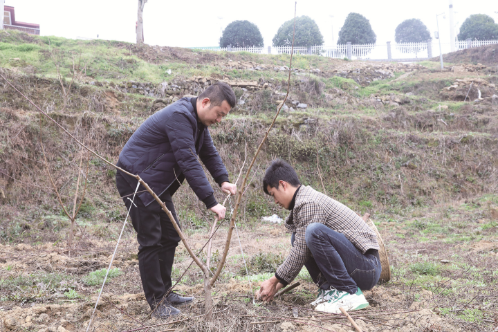 重慶彭水網(wǎng) (作者 趙琴)3月6日,在紹慶街道天臺(tái)村桃樹(shù)種植基地,村民們正忙著進(jìn)行田間管理,為桃樹(shù)壓枝,為今年豐產(chǎn)豐收打牢基礎(chǔ)。據(jù)了解,近年來(lái),天臺(tái)村利用村產(chǎn)業(yè)發(fā)展資金成立生態(tài)農(nóng)業(yè)公司,流轉(zhuǎn)400畝土地,種植鷹嘴蜜桃和黃桃,壯大村集體經(jīng)濟(jì)的同時(shí)為村民增加增收渠道。