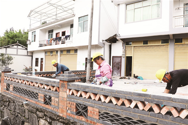 近年來(lái),我縣深入開(kāi)展農(nóng)村人居環(huán)境整治提升行動(dòng),接續(xù)實(shí)施“千村宜居”計(jì)劃,打造美麗宜居鄉(xiāng)村,加快完善農(nóng)村基礎(chǔ)設(shè)施建設(shè)。圖為工人在靛水街道文武社區(qū)至古文村段改造農(nóng)戶(hù)庭院,美化沿線(xiàn)鄉(xiāng)村環(huán)境。
