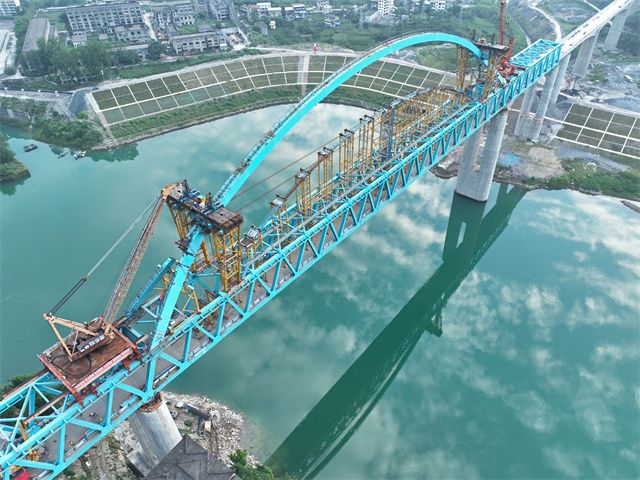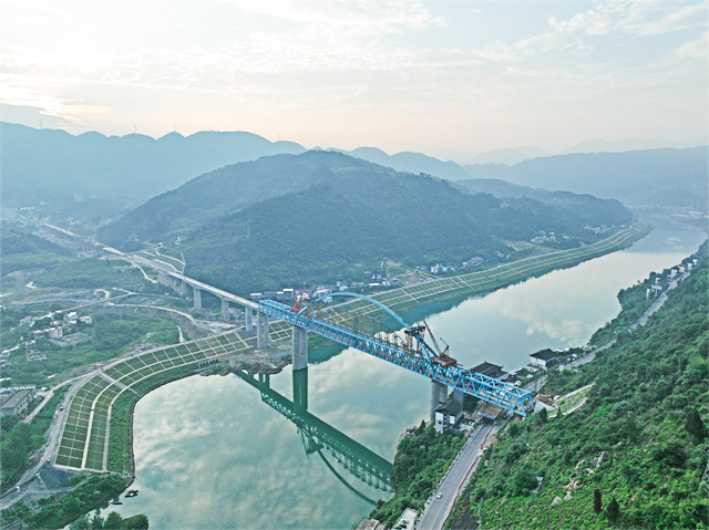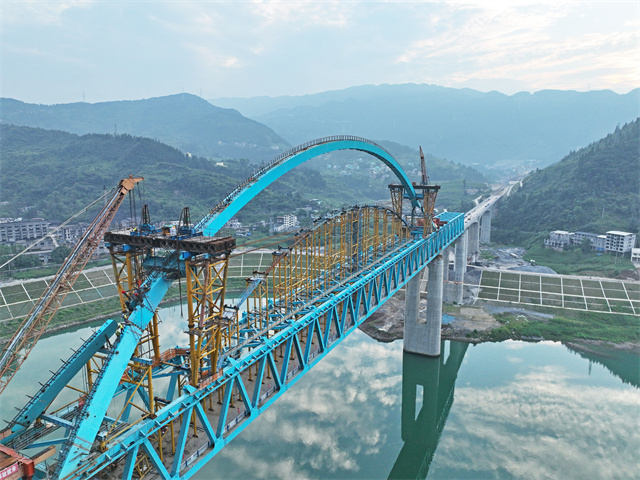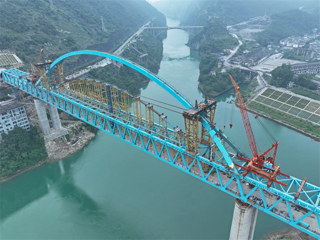 渝湘高鐵清水坪烏江大橋拱肋順利提升合龍