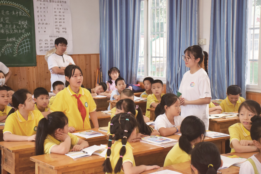 “哥哥姐姐帶著我們做游戲、講故事,給我們上課,學(xué)到了很多有用的知識,非常感動,希望以后我能跟他們一樣,幫助更多人成長?!备吖孺?zhèn)中心校三年級學(xué)生黃曦璇說。