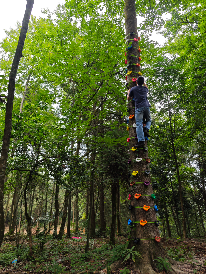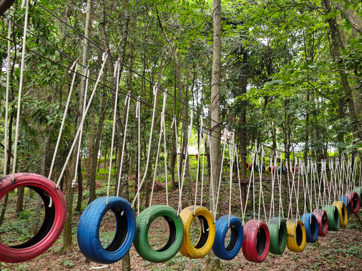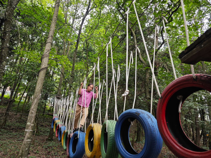 傍晚,架上燒烤架自烤羊肉串,燃起篝火跳著踩花山;還可沿著林間步道走走停停,讓你完全忘卻身后的職場壓力與城市喧囂。