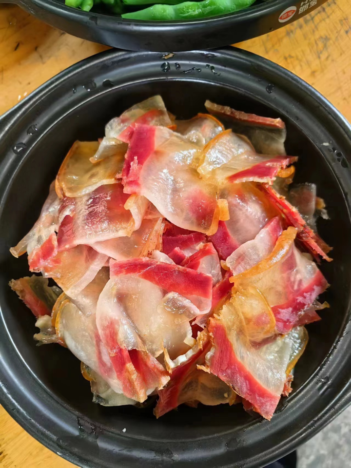 原生態(tài)的農(nóng)家美食,小炒肉香氣撲鼻,熗炒臘肉油脂豐盈,炒南瓜花、南瓜葉、四季豆……