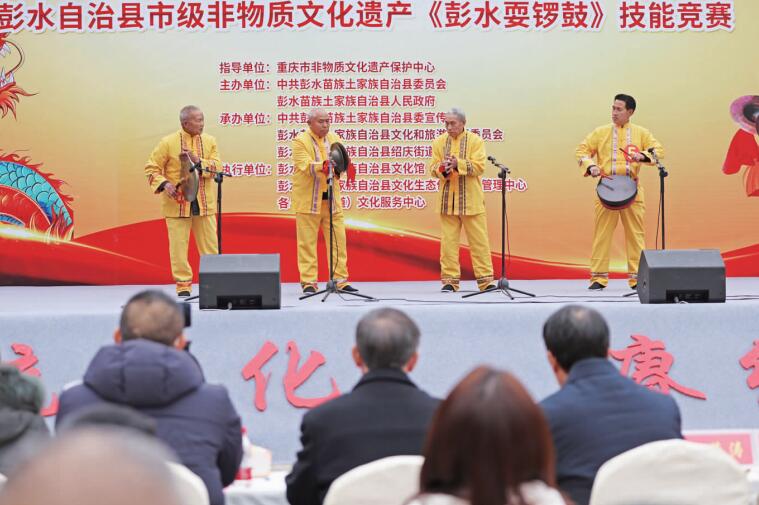 彭水文化生態(tài)保護中心負責(zé)人劉淇境介紹:“舉辦這次耍鑼鼓技能競賽活動,主要是為了全面推進渝東南文化生態(tài)保護實驗區(qū)建設(shè),真正達到民眾受益的目的。同時,營造全民參與非物質(zhì)文化遺產(chǎn)傳承保護的濃厚氛圍,豐富人民群眾的精神文化生活,弘揚傳統(tǒng)文化,賡續(xù)中華文脈,一覽鑼鼓魅力,傳承璀璨非遺。”