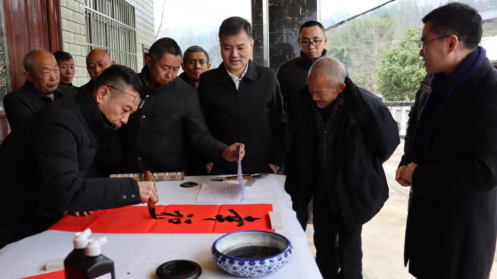 中央外辦把定點(diǎn)幫扶工作與同彭水八個(gè)基層支部的聯(lián)學(xué)共建結(jié)合起來(lái),以點(diǎn)帶面、以黨建引領(lǐng)全局。調(diào)研組一行先后來(lái)到善感鄉(xiāng)周家寨村,鞍子鎮(zhèn)羅家坨村開(kāi)展支部共建活動(dòng),通過(guò)實(shí)地查看、聽(tīng)取介紹等方式,與大家話家常、聊變化,詳細(xì)了解支部共建開(kāi)展情況。支部共建活動(dòng)現(xiàn)場(chǎng)還開(kāi)展了寫(xiě)春聯(lián)活動(dòng),為大家書(shū)寫(xiě)春聯(lián),送上新春祝福。調(diào)研組表示,要堅(jiān)持以人民群眾為主體、以激發(fā)內(nèi)生動(dòng)力為目標(biāo),充分發(fā)揮黨建優(yōu)勢(shì)精準(zhǔn)賦能鄉(xiāng)村振興,推動(dòng)結(jié)對(duì)共建走深走細(xì)走實(shí)。