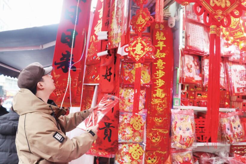記者在兩路口多個(gè)攤位上看到,對(duì)聯(lián)、燈籠、紅包等傳統(tǒng)飾品上,都有搶眼的“龍?jiān)亍?,呆萌可?ài)的龍玩偶、招財(cái)納福的龍年對(duì)聯(lián)、精致獨(dú)特的龍年窗花、充滿年味的新春掛件和燈籠……吸引了不少顧客前來(lái)選購(gòu)。