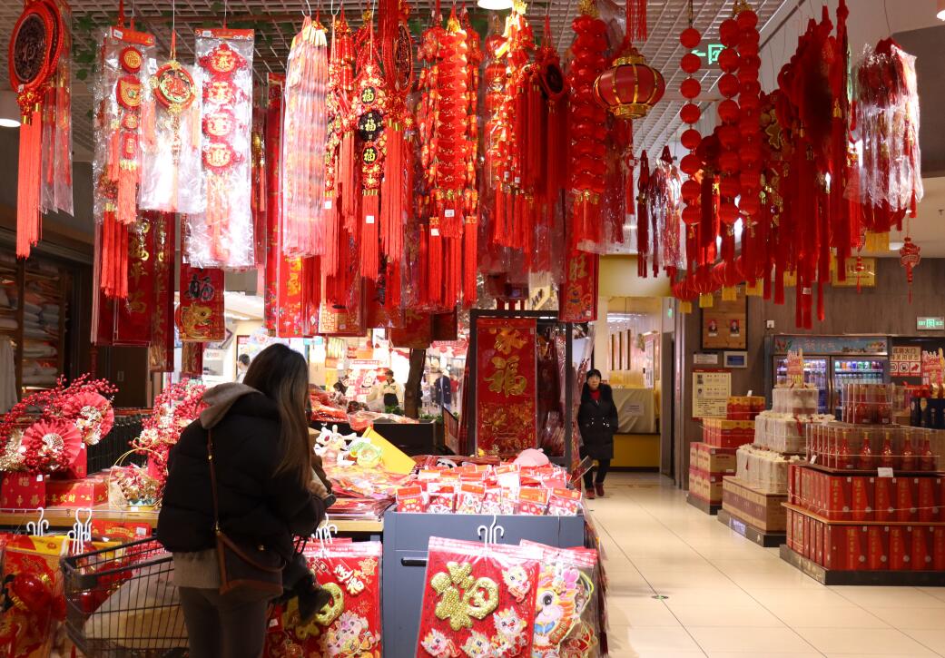 在佳慧超市兩江廣場(chǎng)店,各種年貨飾品琳瑯滿目,充滿“龍?jiān)亍钡娘椘芳娂姄屨际袌?chǎng)“C”位,將喜悅的春節(jié)氛圍渲染得更加濃厚。在人們熟悉的春節(jié)主題背景音樂(lè)中,不少市民來(lái)到超市年貨區(qū),挑選心儀的商品。