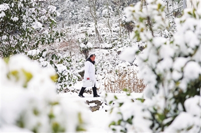 村醫(yī)豆世均踏雪送醫(yī)。 首席記者 趙 勇 攝影