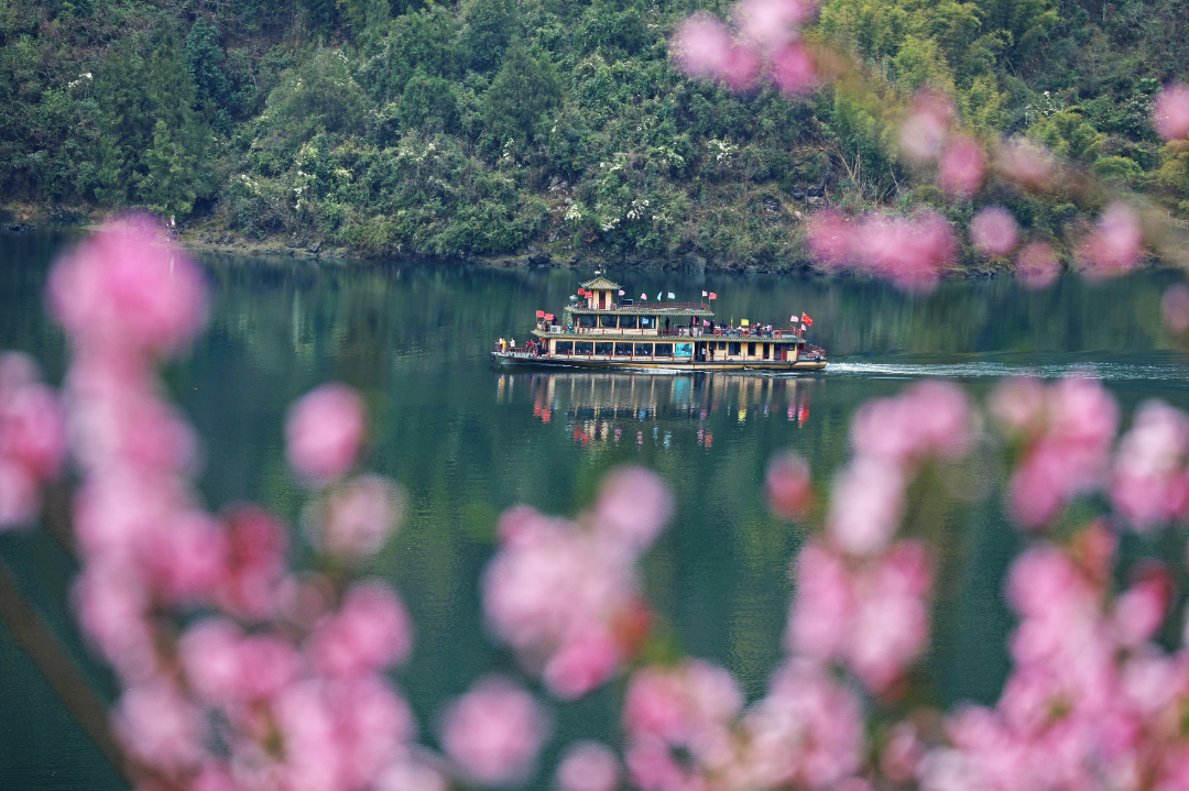 重慶彭水完網(wǎng)(首席記者 趙 勇 記者 冉 立)桃花盛開春意濃,四月美景入畫中。烏江兩岸的油菜花、李花、桃花等相繼盛開,吸引不少游客乘著游船暢游在碧綠的山水與花海間,感受春日里的烏江美景。