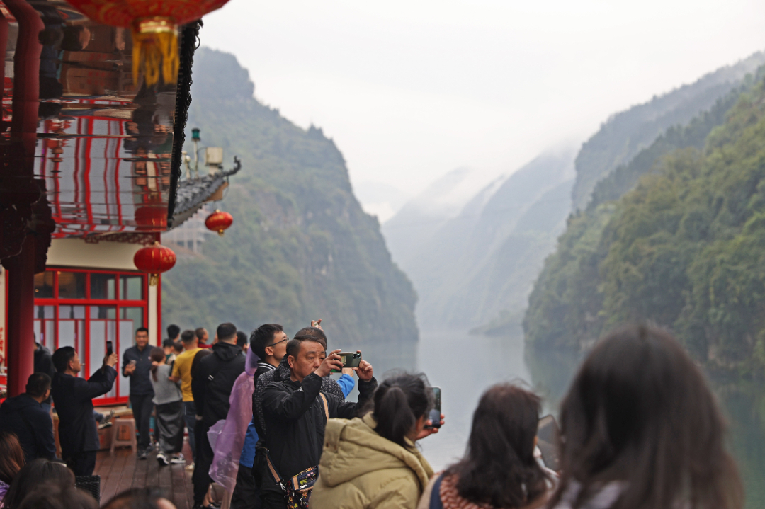 烏江發(fā)源于貴州,干流全長1037公里,是長江八大支流之一。烏江彭水電站建成后,高峽平湖,碧玉環(huán)山,竹木滴翠,水天一色,如畫如詩。特別是貴州沿河至彭水境內(nèi),流長64公里,高山深谷,江中碧水奔流,兩岸綠蔭連綿,是千里烏江最精華段。近年來,彭水緊扣推進烏江畫廊旅游示范帶建設這一目標,在堅持抓好烏江生態(tài)資源保護的同時,依托獨特的資源優(yōu)勢,挖掘烏江畫廊沿線豐富的文化旅游資源,打造優(yōu)質(zhì)景區(qū)集群和精品旅游線路。烏江畫廊旅游以峽谷觀光、親水體驗為主題,泛舟峽江,“船在畫中行,人在畫幅中”。