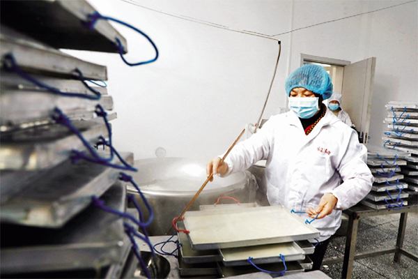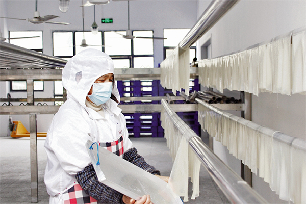 合作社用山泉水進行苕粉的生產加工,加工出來的紅薯淀粉純度白、亮度高、品質好,苕粉細膩,入口軟、糯、香、滑,深受顧客喜愛。