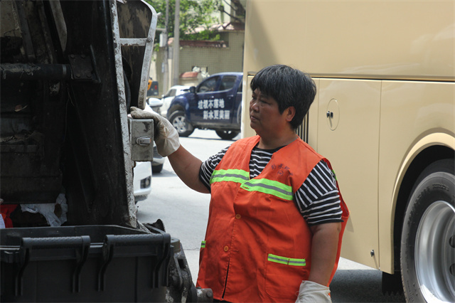 從事環(huán)衛(wèi)工作已有8年的陳明花,現(xiàn)在主要負(fù)責(zé)垃圾點(diǎn)位及垃圾桶的清洗工作,每天清晨5點(diǎn),當(dāng)大多數(shù)人還在夢(mèng)鄉(xiāng)時(shí),她便開(kāi)始忙碌的一天。