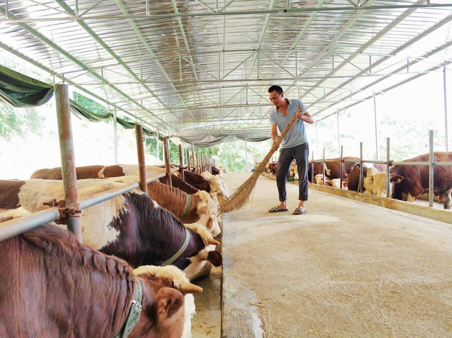 養(yǎng)殖肉牛以來,王兵每天親自喂養(yǎng),并仔細查看牛的長勢、健康及防疫情況。為防止牛生病,平時牛棚一個月消毒一次,每頓飼料喂完都清掃牛棚,讓牛舍保持干凈整潔,防止細菌滋生。