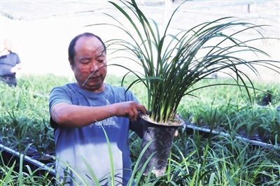 走進(jìn)“蘭花園”,各式各樣的蘭花映入眼簾,有的植株已經(jīng)開出了花苞,散發(fā)淡淡清香。譚方云悉心地打理蘭花盆栽,譚云波負(fù)責(zé)澆水,極善言詞的劉云飛為顧客介紹蘭花品種。