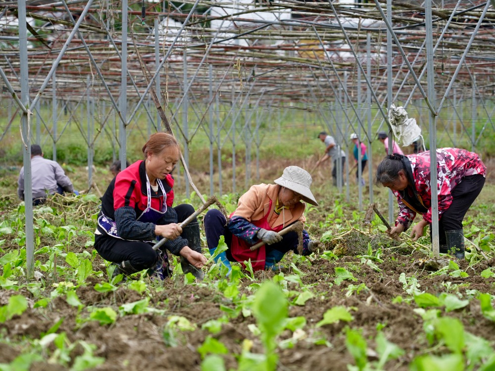 村民抓緊時間種植菜頭。
