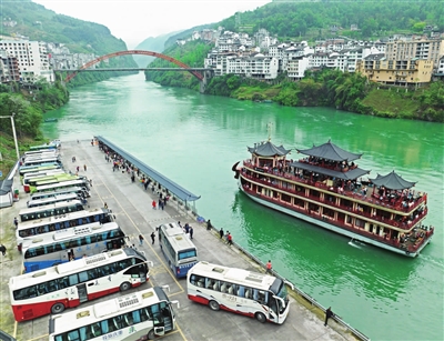 近年來,彭水堅(jiān)持把旅游業(yè)作為生態(tài)經(jīng)濟(jì)發(fā)展的第一支柱產(chǎn)業(yè),大力實(shí)施“旅游+”發(fā)展戰(zhàn)略,以“旅游+”融合發(fā)展為抓手,按照“品牌引領(lǐng)、活動(dòng)助推、全域建設(shè)”要求,統(tǒng)籌推進(jìn)各鄉(xiāng)鎮(zhèn)因地制宜發(fā)展具有民族特色的鄉(xiāng)村旅游,并推出一批生態(tài)文化特色鮮明的旅游線路,打造一批全國知名文化旅游節(jié)會(huì)品牌,提升“世界苗鄉(xiāng)·養(yǎng)心彭水”國際影響力,形成步步皆景、處處宜游的全域旅游發(fā)展新格局。