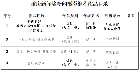 彭水苗族土家族自治縣新聞工作者協(xié)會 關(guān)于擬參評第27屆重慶新聞獎(2025年度)作品的公示