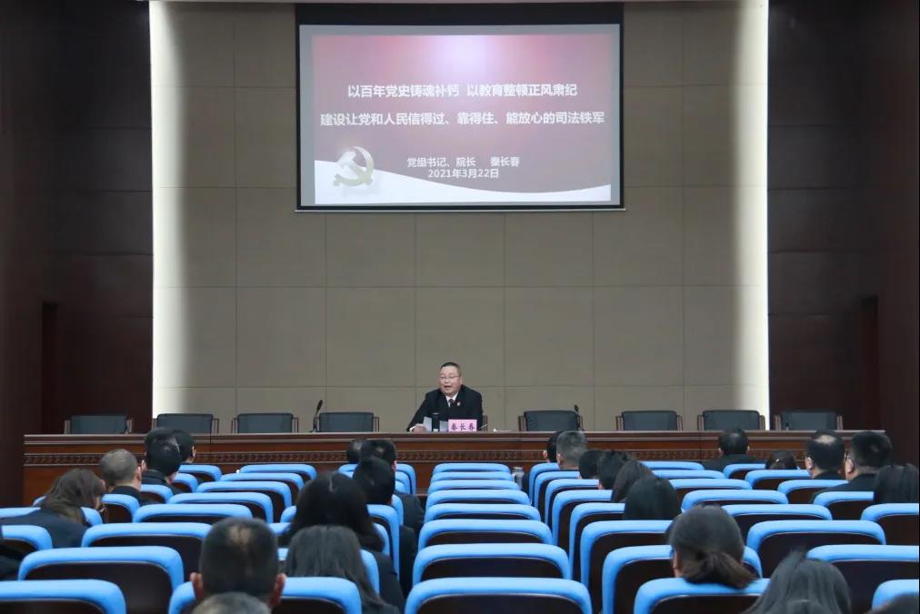 秦院長(zhǎng)以“百年黨史鑄魂補(bǔ)鈣 以教育整頓正風(fēng)肅紀(jì) 建設(shè)讓黨和人民信得過(guò)、靠得住、能放心的司法鐵軍”為主題,結(jié)合自己在黨史學(xué)習(xí)教育及政法隊(duì)伍教育整頓等活動(dòng)中的學(xué)習(xí)思考談?wù)J識(shí)、講體會(huì)、話感悟、促提升,與全體干警進(jìn)行了深入交流。