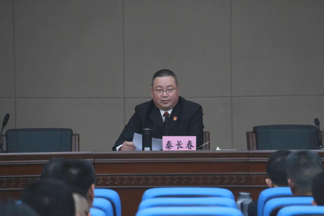 3月22日下午,彭水法院黨組書(shū)記、院長(zhǎng)秦長(zhǎng)春為全院干警講授隊(duì)伍教育整頓主題黨課。
